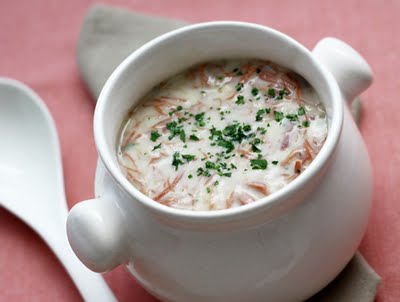 Em uma panela média, aqueça em fogo médio 2 colheres (sopa) do creme vegetal (margarina) e frite a cebola por 2 minutos ou até que murche.